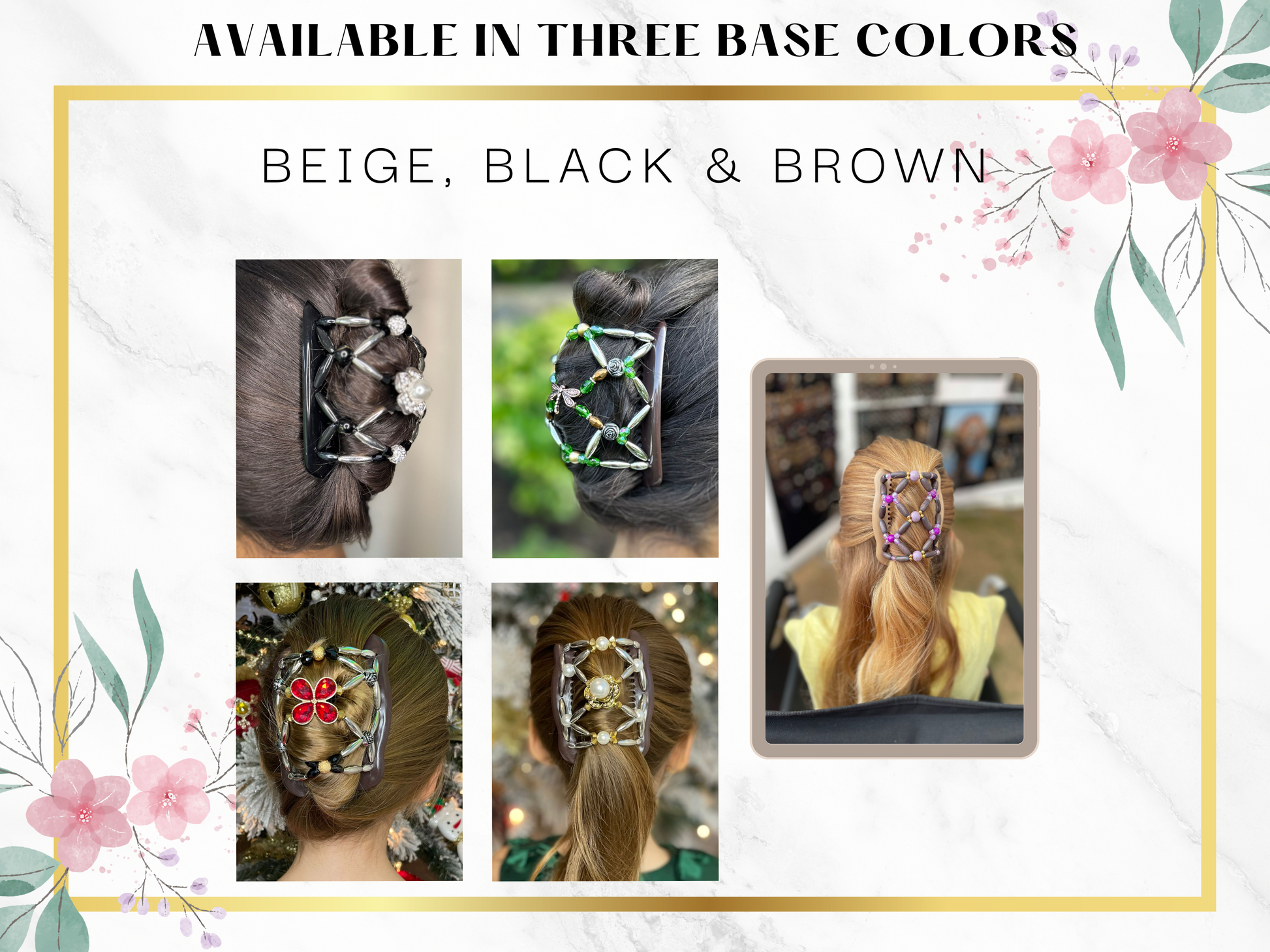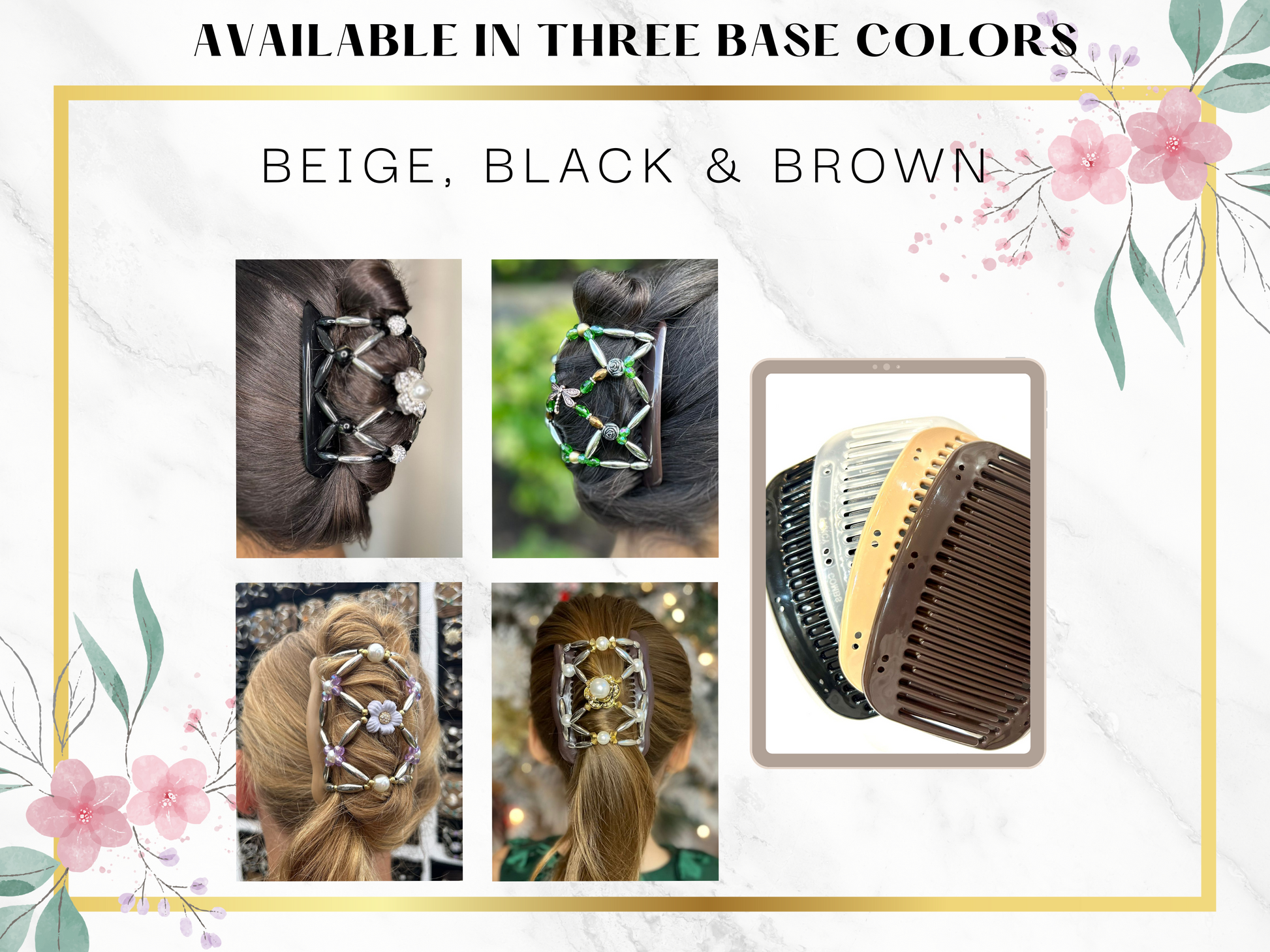 Fancy Combs is one of the most exciting hair accessories on the market. Affordable and easy to use and style with these combs. The double-locking of the combs can secure your hair throughout the day. Capable of holding any type of the hair, from thin to thick, from short or long. The product is handmade with rubber double combs, durable elastic, silver and gold plated beads along with sparkling crystals. The beads catch the light nicely at the turn of your head. The combination of the metals and beads will create a gorgeous look for your hair. These combs are elegant for weddings while versatile enough for a workday. These are perfect for those "Bad Hair Days!" Whether that means the office or the grocery store. These combs are wonderful for even a run or trip to the gym. Elastics can (and do) break the hair, or cause headaches. My Fancy Combs are soft and durable enough to sleep on or to set your head in a car, while gentle on hair.