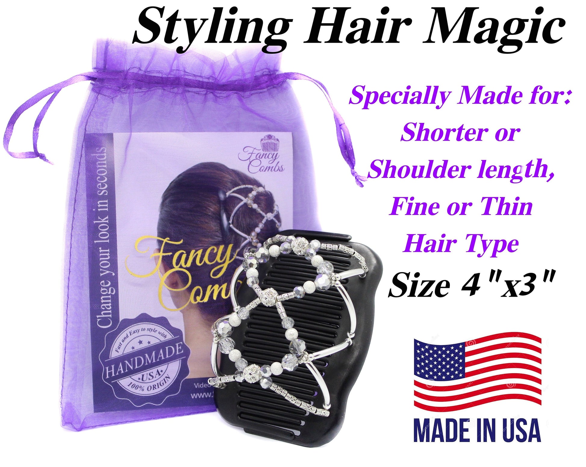 Hair Accessory for Fine, Thin or Shoulder length hair, Fancy Hair Piece, Double Combs with Elastic holds your hair all day.