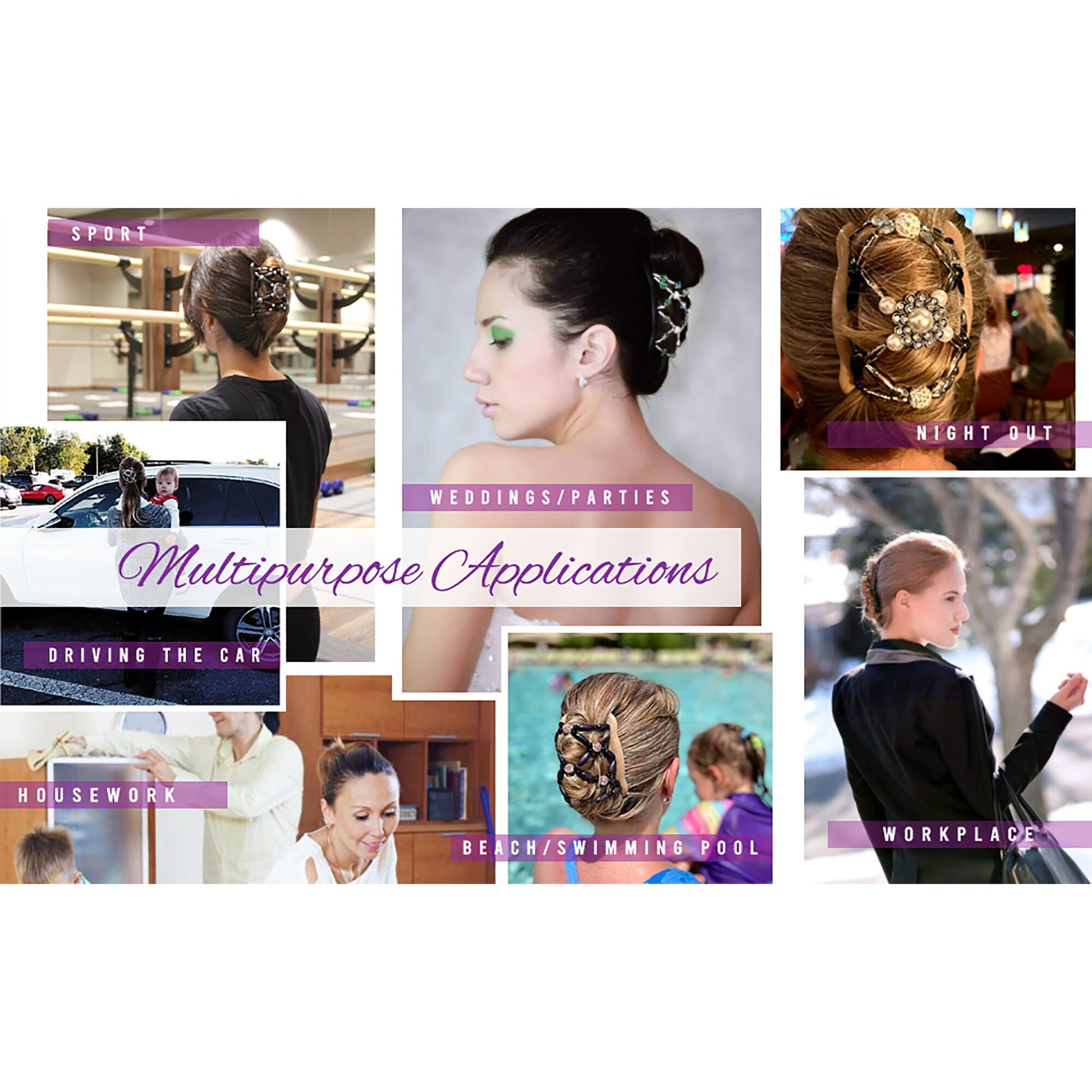 The double-locking of the combs can secure your hair throughout the day. Capable of holding any type of hair, from thin to thick, from short or long, straight or curly. Each Hair Clip is created with a combination of two combs and a strong power cord elastic to bind them together. Fancy Combs is the most comfortable hair accessory - avoid hair slide most women get with Ties, Hairpins, and Barrettes. Our Hair Accessories are the best replacement for Ordinary Plastic Hair Claws.